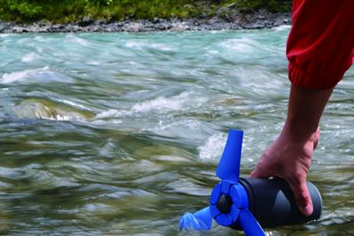 这款便携式水力发电机尺寸为24.5cmx6.5cm,便于随身携带。将其涡轮叶片展开后,涡轮机直径为21cm,重量为800g。它的操作十分简单,首先将涡轮机盖取下,展开涡轮叶片并将其固定。然后用绳子和挂扣将其锁住,就可以放进水里积蓄电能。产品可以通过功率为5W 的迷你USB接口给电池蓄电,至少可以供1台手机充电3次。此外,这款发电机还配有内置光源,可以作为防水手提灯使用。