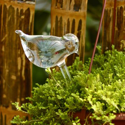 这是一只能自动浇花的小鸟, 不仅可爱而且独特。将玻璃制造的鸟装满水后插入花盆之中,如果土壤过于干燥,它会自动渗出水来浇花,非常方便,尤其适合懒人以及外出旅行时使用。