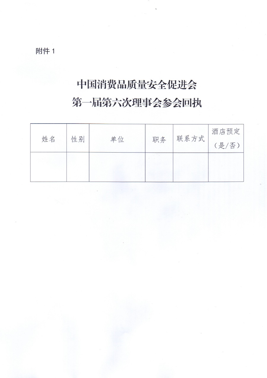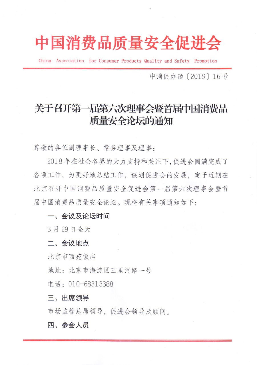 关于召开第一届第六次理事会暨首届中国消费品质量安全论坛的通知