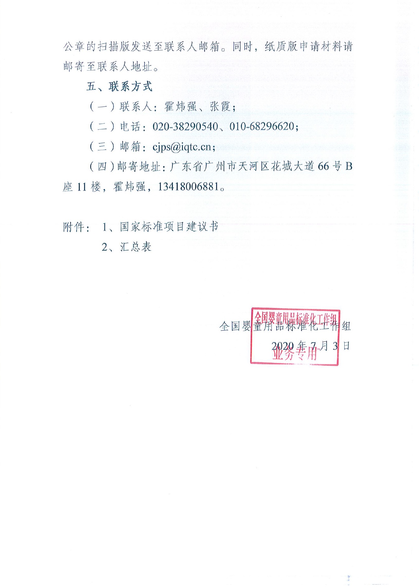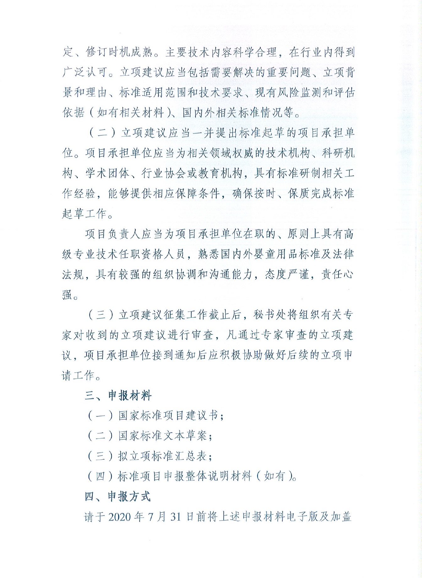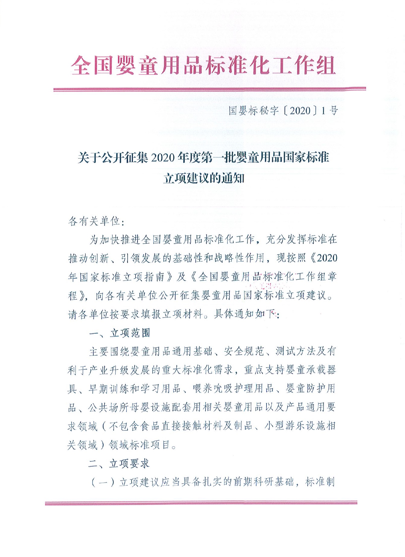 关于公开征集2020年度第一批婴童用品国家标准立项建议的通知