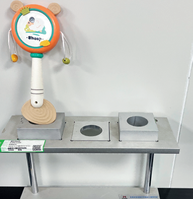 摇铃多为塑胶玩具,供婴儿玩耍使用。手柄容易被婴儿放入咽喉中,可能引起呼吸道阻塞,发生窒息危险。