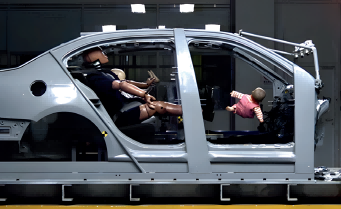 儿童保护动态评价是在100%重叠正面碰撞试验和50%重叠相向碰撞试验中的后排座椅上安装儿童安全座椅和儿童假人,100%重叠正面碰撞试验使用3岁Q系列假人,MPDB 50%重叠相向碰撞试验使用10岁Q系列假人,评价的伤害指标包括头部伤害、颈部伤害、胸部伤害、腹部伤害。如果出现安全带勒脖子、安全带滑肩、固定点失效等情况,是要相应扣分的。C-NCAP中规定用不同身高体重的儿童假人,模拟不同年龄的儿童,在儿童假人的头部、颈部、胸部、腹部等部位配有相应的传感器,在模拟碰撞过程中,通过传感器采集到的数值,来判断假人的受伤程度,通过假人的位移判断是否会和车内物体发生二次碰撞,从而来评价儿童安全座椅对儿童的保护效果的好坏。