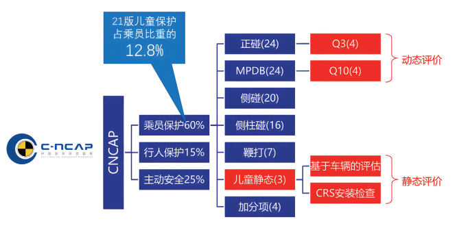 2021版C-NCAP测评规程中,儿童评价包括动态评价和静态评价两部分,在乘员保护板块中占13%,这是相当高的分数比例,C-NCAP希望能够引起企业的足够重视,投入相应的开发资源,提升儿童的乘车安全水平。