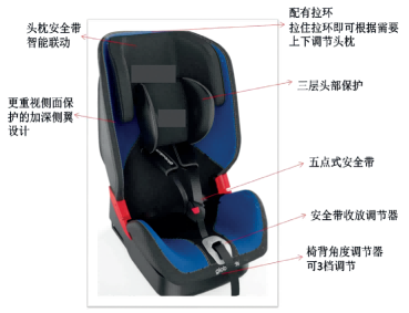 儿童安全座椅是为不同年龄体重的儿童量身设计的,其结构一般包括座椅骨架、缓冲材料、布套、安保组件以及其他附件等。座椅骨架和缓冲材料可以有效地吸收碰撞能量,比如头枕的设计可以保护孩子的头部,侧面防护装置能更好地吸收侧面撞击所产生的冲击力,儿童座椅自带的五点式安全带,两个点保护肩膀,两个点保护腹部,还有一个点保护胯部,能在5个方向同时消散撞击产生的力量,将外力从孩子身上转移,同时高性能的肩带护套也能起到吸能和防滑的作用,为婴幼儿提供保护。在正面碰撞事故中,儿童安全座椅可以有效约束住儿童的身体,防止儿童飞出,或是位移过大与前排座椅等车内物体发生撞击。在侧面碰撞事故中,儿童在侧面碰撞中最容易受伤的部位就是头部,儿童安全座椅的侧翼和侧碰防护装置,可以有效保护孩子头部避免与车门、车窗发生碰撞,甚至甩出窗外。在追尾碰撞事故中,儿童安全座椅保护儿童脆弱的颈部,后向安装儿童座椅能够在急刹车时对儿童的颈部提供更好 的保护。