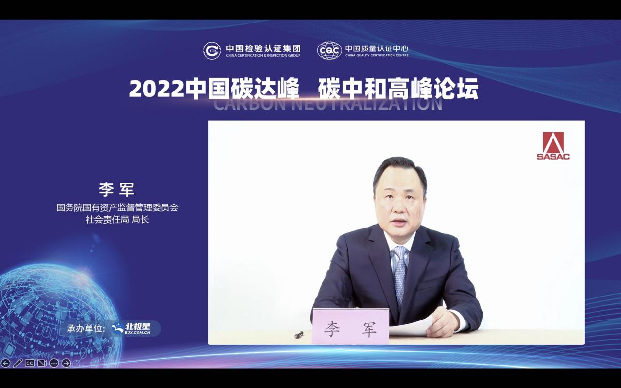 国务院国资委社会责任局局长李军强调,中央企业必须将绿色发展理念贯穿企业发展经营全过程之中,要积极构建碳达峰、碳中和工作推进机制,把握产业结构调整;要充分发挥科技创新的作用,提升能源消耗总量和碳排放总量的有效控制能力;要加快转变高资源消耗、高污染排放的发展方式。他希望,中国中检及其所属中国质量认证中心要发挥好“国字号”认证机构的专业技术支撑作用,持续为绿色低碳发展赋能,为实现“双碳”目标提供支撑。