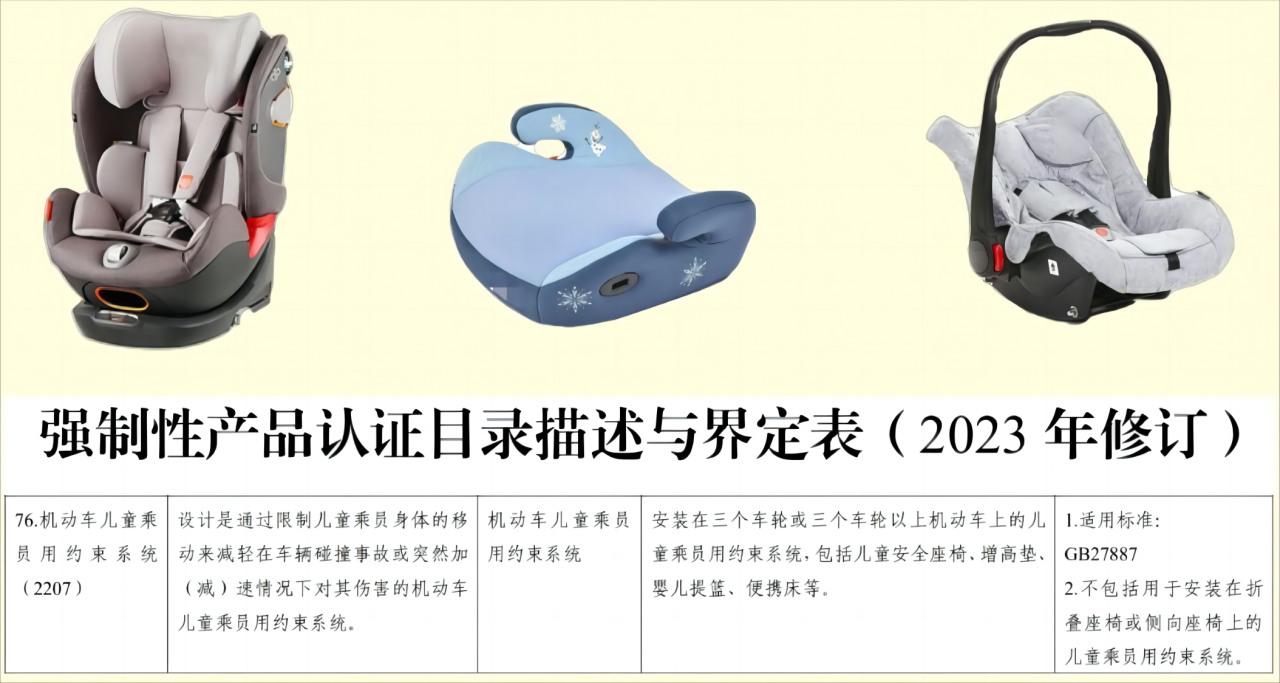 儿童安全座椅、增高垫、婴儿提篮等都在国家强制性产品认证目录内。