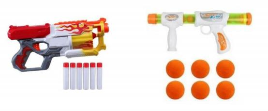 (2)看外观:选择外观色彩较鲜艳的产品,不要选择枪 口、枪管、枪匣主要部位为黑色、灰黑色或仿金属颜色的产品,尽量选择整体由三种或以上鲜艳颜色搭配的产品。