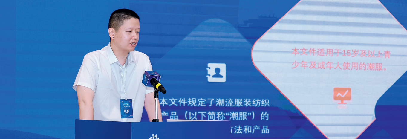 潮服市场不仅具有巨大的发展潜力,还呈现出文化融合、多元化、数字化和可持续化的趋势特征。在工艺方面,潮服产品也相对复杂。目前,潮服领域尚无专项标准。由于缺乏适用标准,市场销售的绝大部分潮服产品,只能根据形态选择执行《针织休闲服装》(FZ/T 73020)、《针织T恤衫》(GB/T 22849)或《单、夹服装》(FZ/T 81007)等标准,这些标准无法对潮服产品的质量安全起到有效规范作用。潮服虽然面向15岁及以上青少年,但是在IP融合情况下,其新颖设计对儿童及婴幼儿也有一定的吸引作用,可能被儿童接触或把玩。而且,潮服的特殊性在于融入多元文化,服装形态上会含有绳带以及金属、塑料等材质。