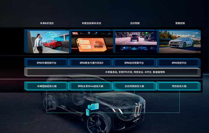 车辆控制超级大脑负责基础功能和车况管理,该单元集成多达100项车辆功能,连接50个传感器。车载超级大脑对数据的智能预处理显著优化了与宝马云端的数据交互效率。