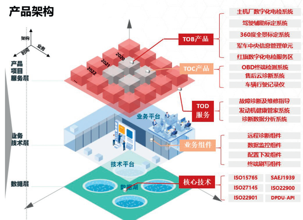 1.以整车数字化电检平台为代表的解决方案,整合了“云-边-端”协同架构、多协议数据混采技术与五层数据校准机制,构建覆盖研发、生产、售后全生命周期的智能管理体系。