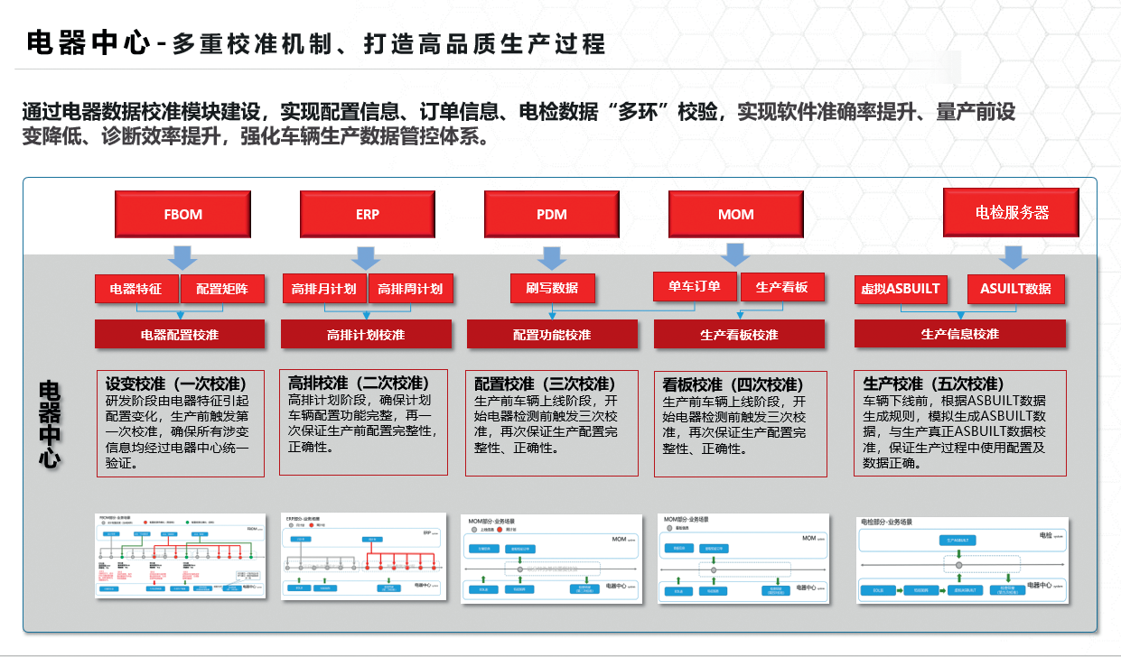 在研发、生产等阶段设置五层数据校准节点。以量产前设变校准为例,通过对比FBOM(特性物料清单)与生产订单数据,自动识别配置冲突,基于订单驱动的资源匹配算法,平台实现“一车一单”定制化生产。算法综合考虑库存零部件、在途物料及设备状态,动态生成最优生产序列。