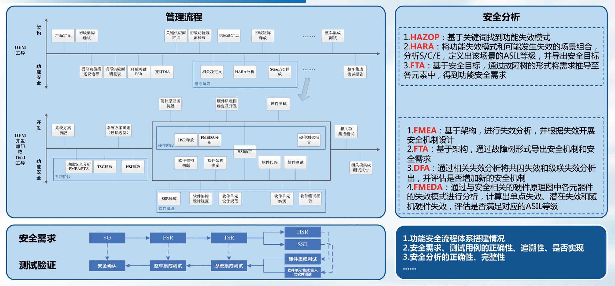 基于行业现状及标准、政策等要求,业内整车厂、零部件供应商已开展功能安全开发测试相关工作,但仍存在一些问题,包括执行力不强、协作机制不完善、成本高等,急需立足功能安全审核角度对这些问题进行分析,并提出解决方案。
