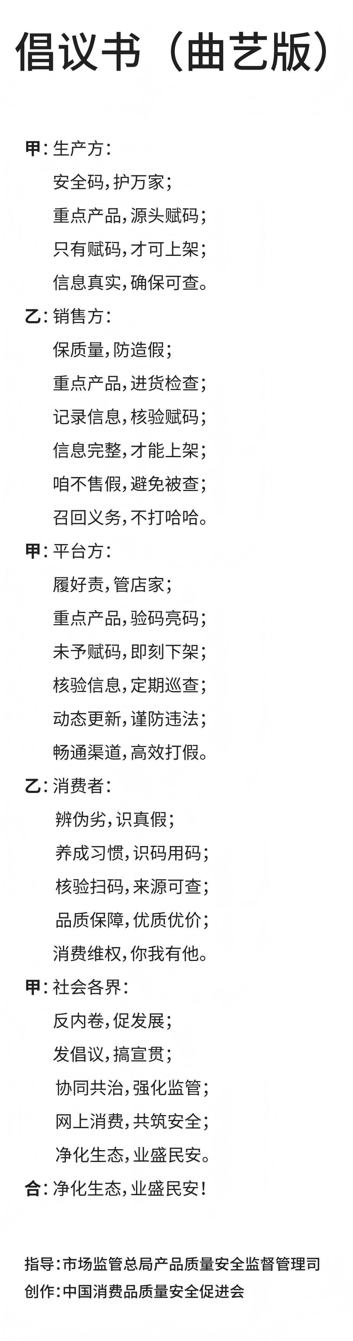 【封面报道】网售产品质量安全赋码核验 “码”上行动倡议活动——倡议书(曲艺版)