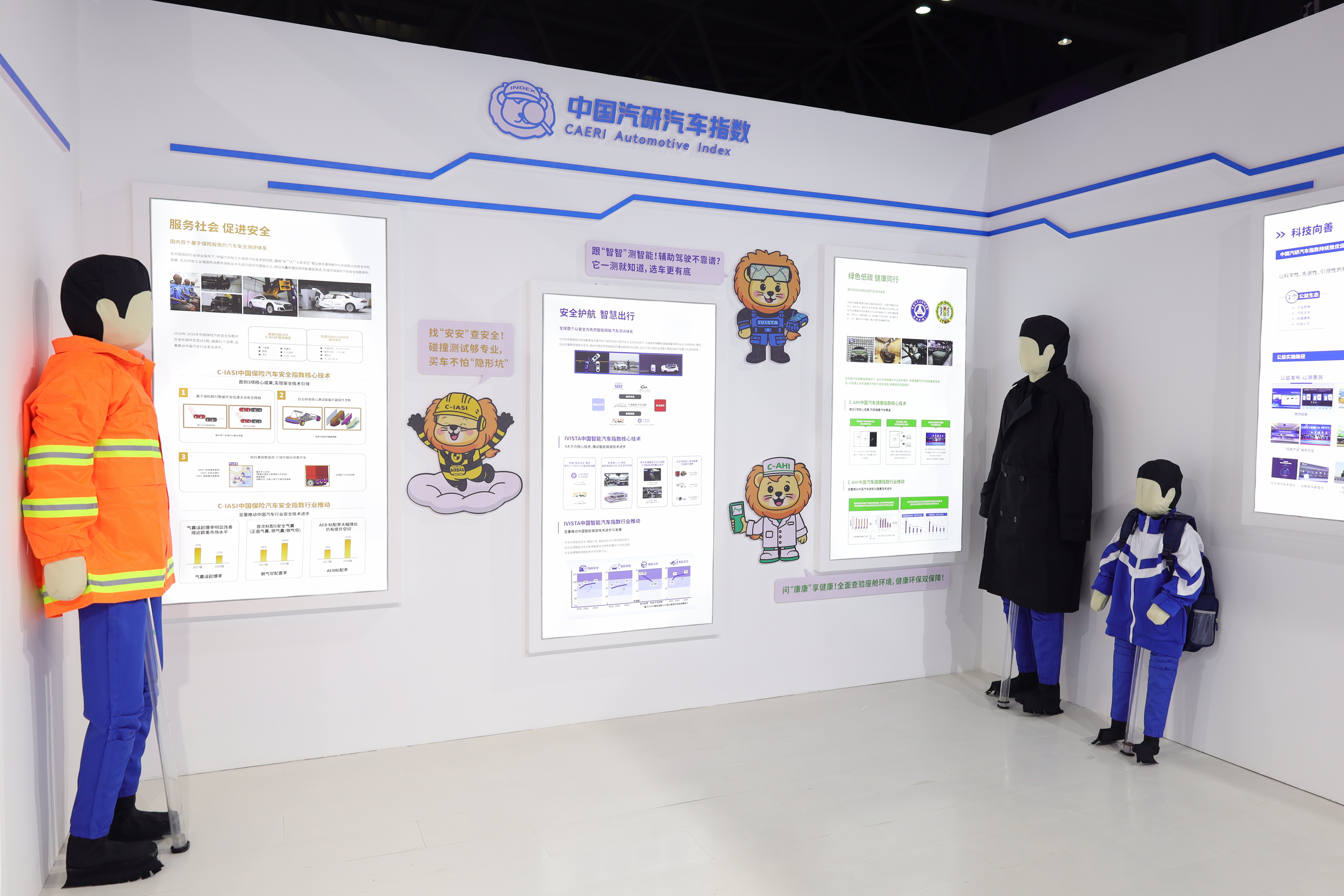 此外,中国汽研展台还设立了“小狮指”打卡互动专区。通过趣味互动向公众传递汽车安全、智能与健康知识,吸引大量观众参与体验。作为中国汽研汽车指数“科技向善”品牌理念的重要载体,“小狮指”科普IP致力于将专业的测评知识转化为大众易懂的内容,服务消费者买车用车全流程。
