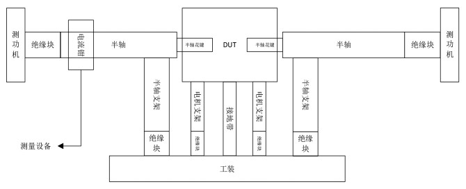 依据GB/T 18655—2018标准要求进行试验布置,被测设备(DUT)采用图1所示接地方式,并进行传导发射电流法测试。随后,将轴支架的绝缘部分去除,使其与工装直接连接,在保持其他条件不变的情况下再次进行传导发射电流法测试,并对两次测试所获数据进行比较分析。
