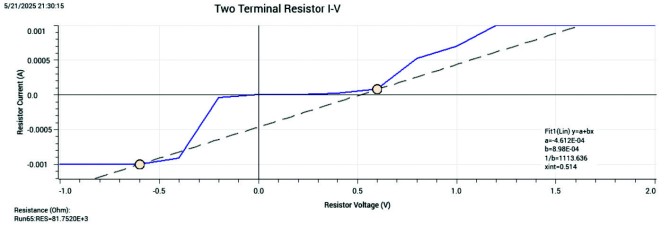 以本案例以太网芯片为例,不上电ESD某引脚试验前及+6kV试验后的I/V特性曲线,如图4、5所示。