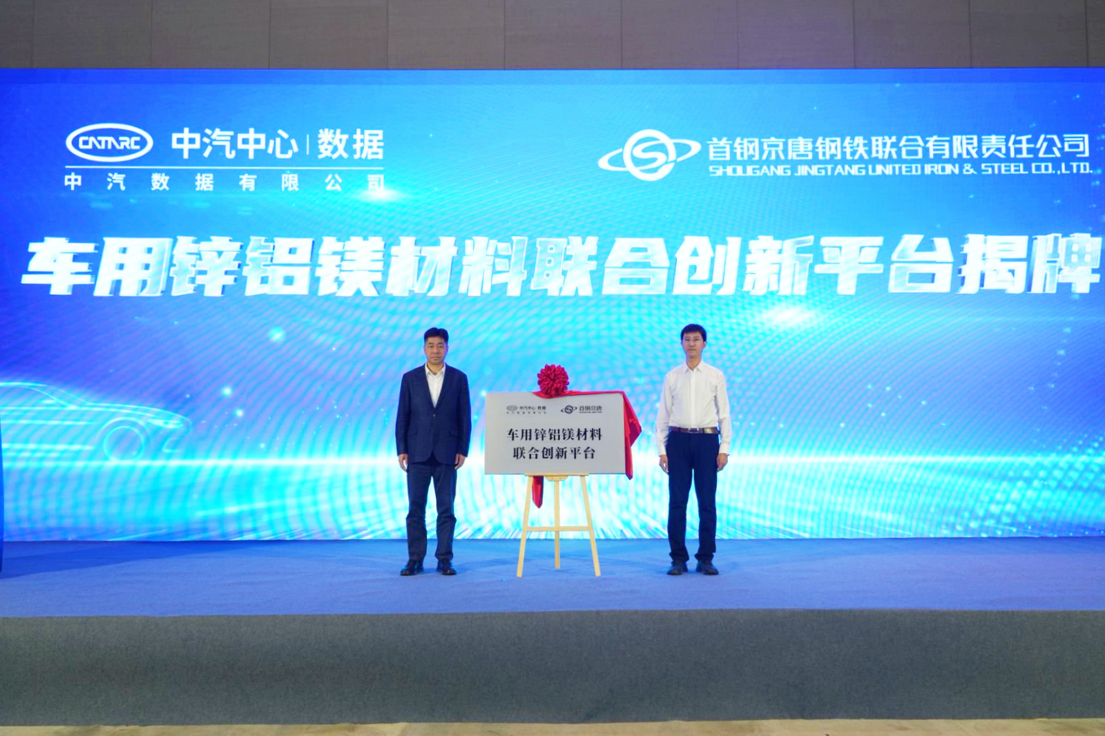活动现场,中汽数据与首钢京唐钢铁联合有限责任公司共同举行了“车用锌铝镁材料联合创新平台”揭牌仪式,旨在通过该平台汇聚行业优势资源,围绕车用锌铝镁材料应用研究、性能验证与标准制定等,推进汽车用新材料在耐蚀防护和绿色制造领域的协同创新,助力汽车产业高质量发展。