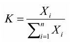 式中:K为某物质的整车气味权重系数;Xi为整车重点气味物质清单中第i种物质的整车相图气味强度;n为整车重点气味物质的数量。