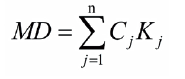 式中:MD为零部件气味与整车气味的匹配度;Cj为零部件中检出的、属于整车重点气味物质的第j种物质的零部件相图气味强度;Kj为零部件中检出的第j种物质的整车气味权重系数;n为零部件中检出的、属于整车重点气味物质的数量。