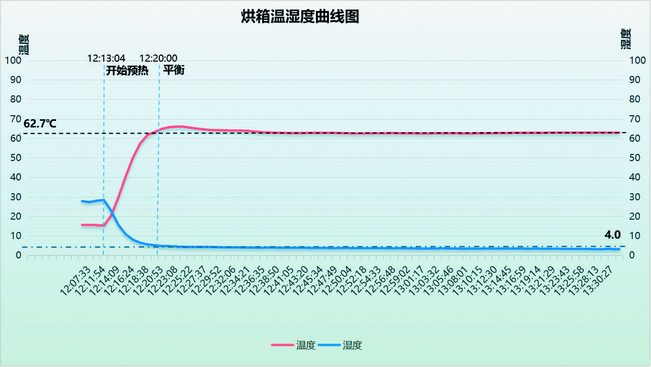 通过在烘房内部关键位置(包括进出口、中心区域及边缘死角)均匀布置8个高精度温湿度传感器,系统以每分钟一次的频率采集环境数据,并实时上传至监控平台。基于历史生产数据,系统建立了工艺评价模型,设定温度、湿度及时间等参数的最优控制范围。在实时监测过程中,系统自动比对实际数据与标准限值,发现异常即时触发多级报警(提示、警告、严重),并生成事件报告以供追溯与分析[8]。
