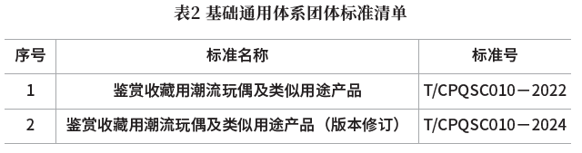 [摘要] 我国潮流玩偶(以下简称“潮玩”)产业已成长为规模超千亿的新兴消费产业,但标准体系滞后缺失导致产品界限模糊、质量参差不齐、监管难度大,制约了产业高质量发展。本文聚焦我国潮玩及衍生品系列团体标准T/CPQS C010-2022《鉴赏收藏用潮流玩偶及类似用途产品》等,构建涵盖基础通用、衍生产品、质量安全、绿色低碳四大维度体系框架,明确核心技术内容与关键指标,为潮玩产业标准化发展提供理论支撑。同时,通过系统分析企业采用该标准组织生产的实践成效、市场监管部门应用标准开展监管的实施情况,以及媒体对标准的宣贯推广等,验证标准的实操性、适配性与社会影响力,为潮玩产业标准化发展提供坚实的理论支撑与实践指导,规范市场秩序,促进消费升级。