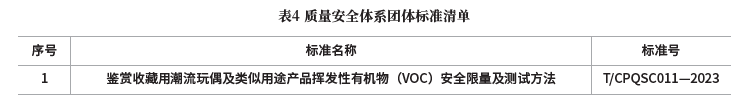 本文通过现行的21项潮玩及衍生品团体标准,构建涵盖材料安全、质量提升、绿色环保等维度的质量评价体系。具体见表1。
