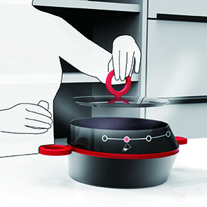 设计师Fatemeh Bateni设计了一款非常适合于初学者的智能烹饪锅。锅内带有先进的温度感应装置,可以实时监测锅内食物的温度,并且在锅盖上显示。此外,锅盖上还可以显示菜谱,可以通过手机客户端将菜谱发送到智能锅上显示。当烹饪的食物每到一个步骤的时候,锅盖上的就会出现文字提示。值得关注的是,这款智能烹饪锅还可以显示出图片,让使用者在烹饪的过程中得到最大的帮助。