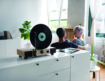 Floating Record是一款竖直型唱片机,将唱片像一幅画一样展现给在场所有的听众,人们不仅只闻其声,还会在音乐中一同欣赏那缓慢转动的唱片封面以及精心设计过的拾音器,把它摆放在客厅无疑是一件十分抢眼的艺术品。