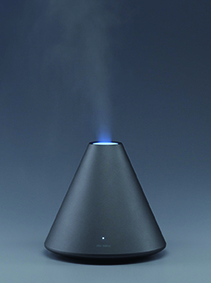 这款加湿器的设计灵感来源于火山,在喷雾时雾气像是从火山口喷出。这个设计最大的亮点是可以切换模式,除了长时喷雾外,还有一个非常漂亮的吐雾功能,切换到该功能时会间断地吐出一个个雾圈。看着雾圈慢慢消失,我们的心也会不由自主地慢慢放松下来。