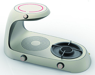 这款小型家庭烹饪设备的体积仅相当于一个小床头柜,特别适合小环境使用。它配备3个灶眼(顶部、下部的电磁灶,右部的燃气灶)和一个吸油烟机(顶部下边),俨然就是一个配套齐全、时尚方便的迷你“厨房”。只不过设计师还未给它命名,您认为怎么称呼它合适呢?