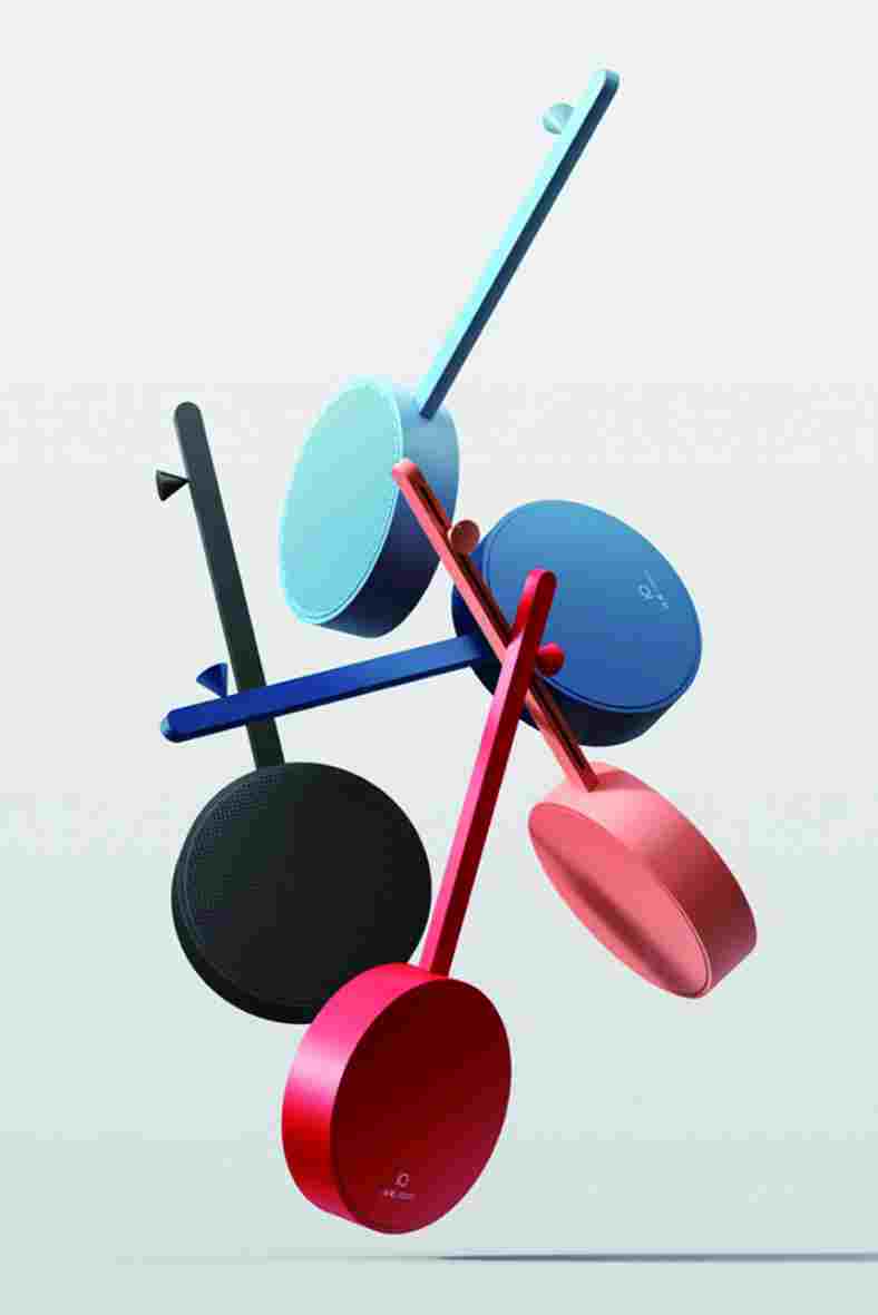 这款无线电扬声器的设计灵感来自吉他的IO(输入和输出)缩写。顺时针转动小圆锥,可打开开关,控制音量;上下移动小圆锥可调节声道。此外,还可以将自己感兴趣的音乐和喜欢的主播加入备忘录。