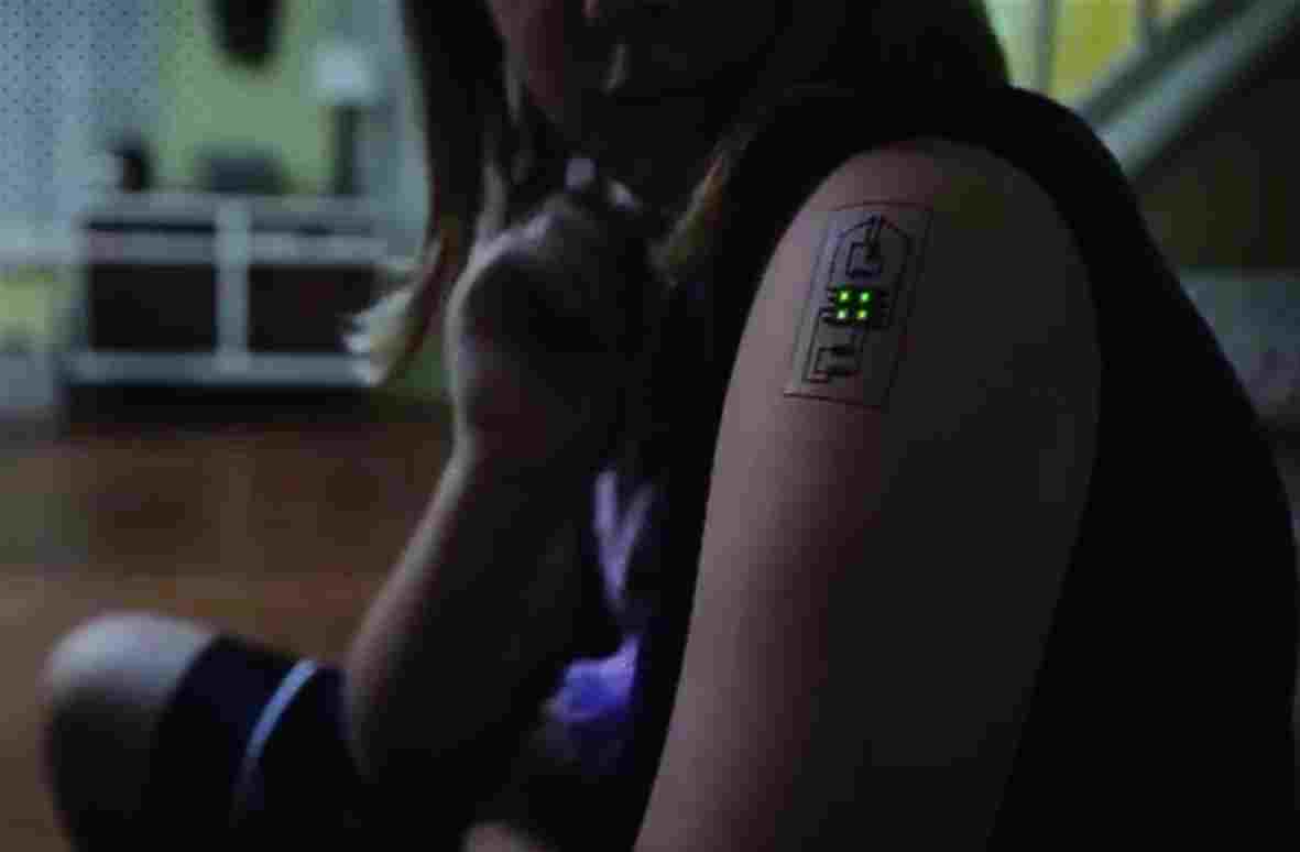 C h a o t i c Moon公司研制开发的纹身样式的智能穿戴设备t e c htats,其纹身组件和导电涂料可以用来创建电路,收集身体数据。这意味着未来不必携带额外的外设,身体就是一台智能设备。