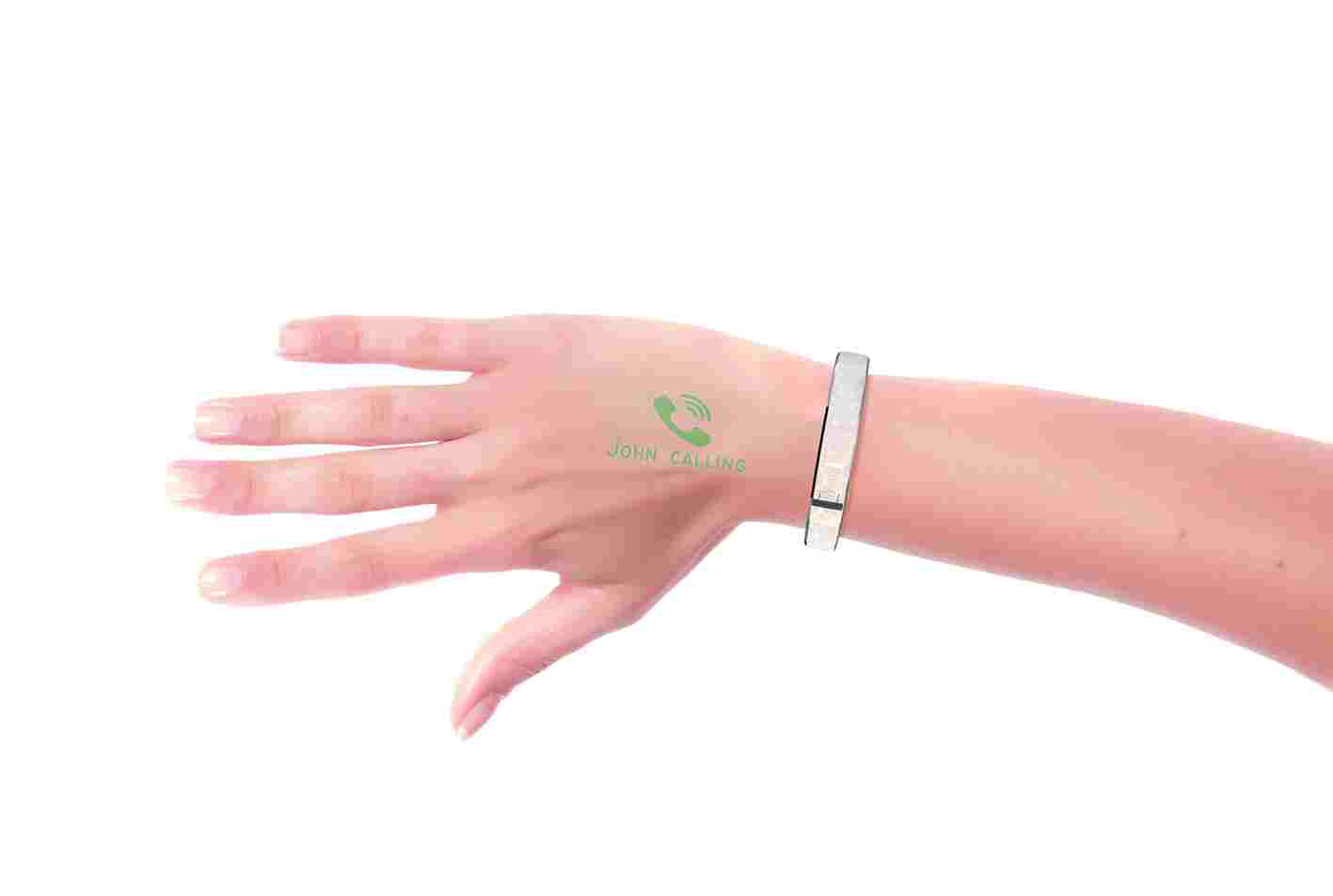 这款智能手环与其他产品的最大不同,是将各种显示数据脱离了电子屏幕的束缚,以投影的方式投射出来,当然直接投影在手背上是最合适的。相对于现在市面上的各种智能手环,又多了一种科技感。