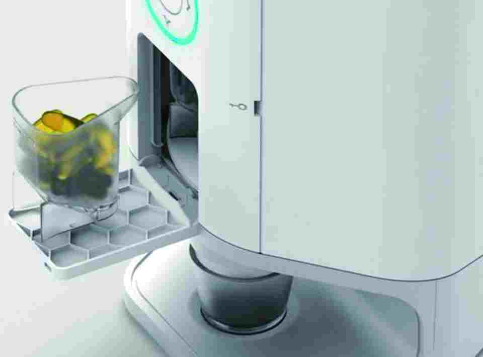 智能医药柜Hero像一台咖啡机,内部有10个药盒,可以容纳10种药品一个月的剂量,供多人使用。医药柜可以通过WiFi与手机APP连接, 只要APP中设置好服药时间和次数,医药柜就可以按时提醒吃药,按下按钮便可得到需要服用的药品。智能医药柜可以防止儿童误碰误食,对老年人来说,在没有监护的情况下也可以自行按时服药。